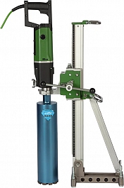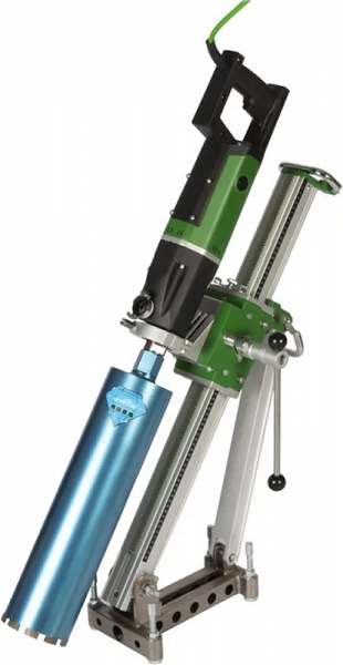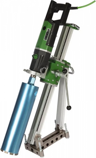 Дрель для алмазного бурения Bycon DMP-162D (Байкон ДМП-162Д) – алмазная дрель для сухого и мокрого алмазного сверления отверстий Ø 10 – 162 мм в железобетоне и Ø 10 – 202 мм в кирпиче и "легком" бетоне; как с водой, так и всухую; как с использованием станины, так и "с рук"; для профессионального использования.