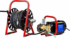 Гидродинамическая машина для прочистки канализации Brexit BrexJet Electric Eco 1000 (Брекзит БрекзДжет Электрик Эко 1000) высокого давления предназначена для очистки труб, стояков, каналов, конструкций и систем с внутренним Ø 25 – 200 мм, длиной до 30 м; промывки и очистки поверхностей различного назначения высоким давлением (до 100 бар); быстрого и эффективного устранения различных типов засоров и отложений: иловых, масляных и жировых отложений, органических загрязнений, окалин, сажи и копоти, битумных пятен, ржавчины, старых лакокрасочных покрытий и т.д.