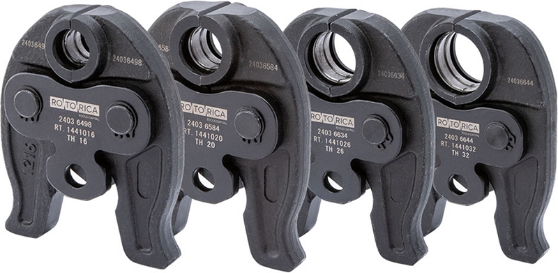 Мини пресс-клещи Rotorica Mini TH 32 (Роторика Мини ТХ 32) предназначены для обжатия радиальных пресс-фитингов пластиковых труб из сшитого полиэтилена (PEX) и металлопластиковых (МПТ) труб Ø 32 мм профилем TH.