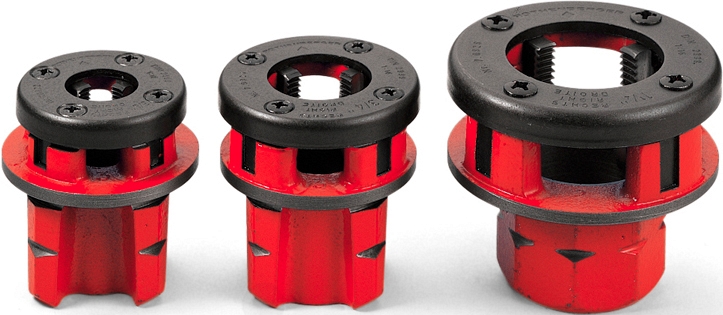 - Быстросменная резьбонарезная головка с надежным креплением для ручных резьбонарезных трубных клуппов Super Cut, электрических резьбонарезных трубных клуппов Supertronic 1250 и 2000