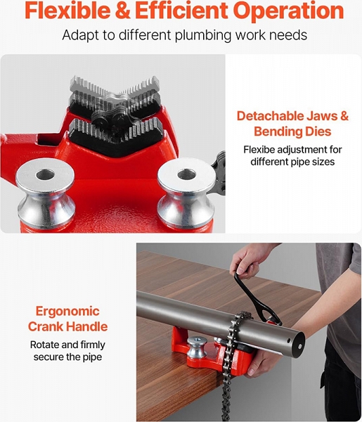 - Широкое применение: подходят для фиксации и гибки труб большого диаметра и других крупногабаритных материалов, широко используемых в промышленности и домашнем хозяйстве, идеально подходят для использования на строительных площадках, в жилых домах, гаражах, мастерских и других местах