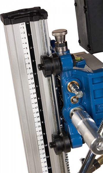 - Роликовая подача хода: металлические ролики каретки с гребневым исполнением обеспечивают точную подачу алмазной коронки и отсутствие люфтов