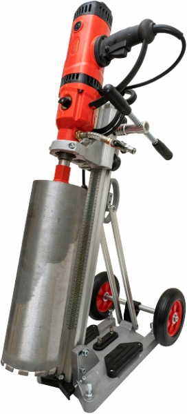 Установка алмазного бурения Voll Industrial V-Kit 160 (Волл Индастриал В-Кит 160) с мощным и производительным мотором 2,2 кВт 230 В – профессиональный, полностью готовый к работе, комплект для алмазного сверления отверстий Ø 20 – 160 мм в армированном бетоне, свежем бетоне, кирпиче, природном камне и т.д. алмазными буровым коронками при проведении строительных работ, прокладке коммуникаций (вентиляции, водоснабжения, электрических сетей) и других работах, под углом до 45°, с подачей и без подачи воды.